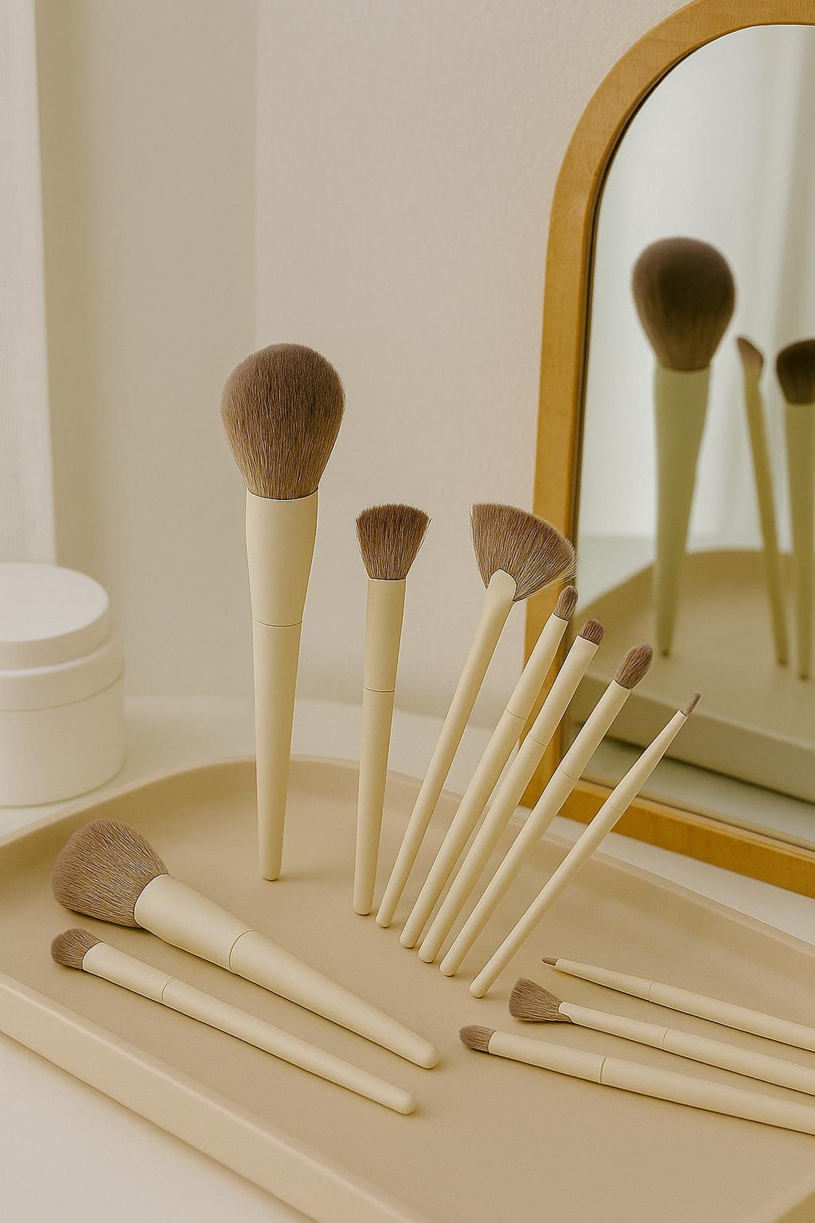 10-piece makeup brush set designed for eye makeup application. Includes brushes for eyeshadow, eyebrows, and nose contouring.
