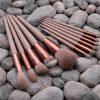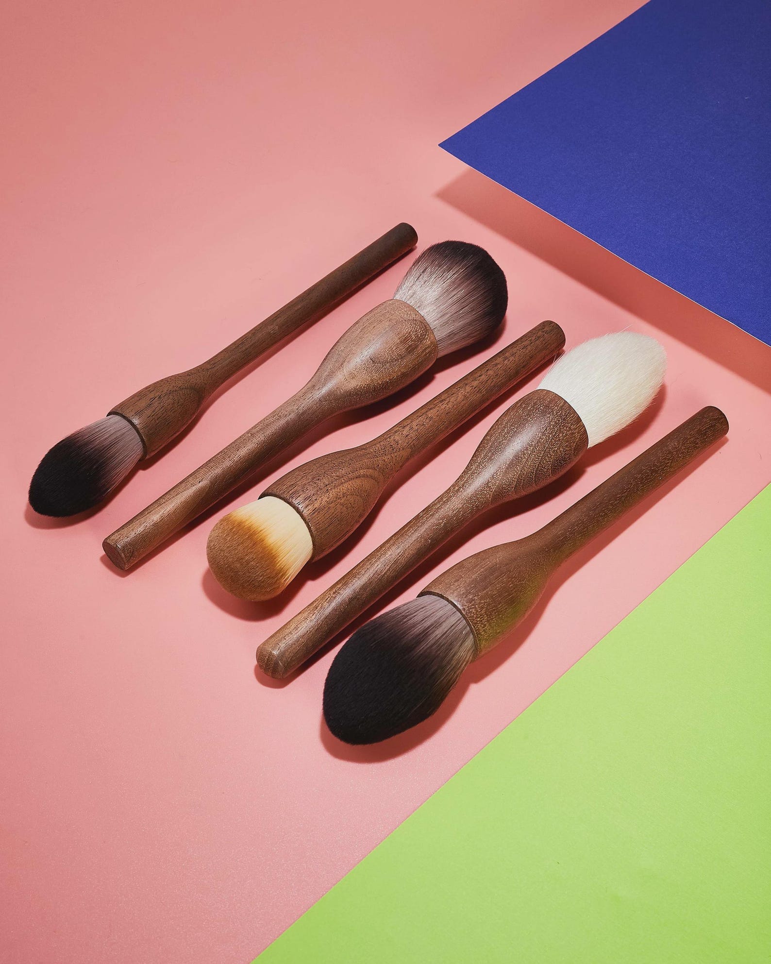 Makeup brush set with ultra-soft nylon bristles and walnut wood handles. Designed for smooth application and even blending with dense, low-shedding bristles.